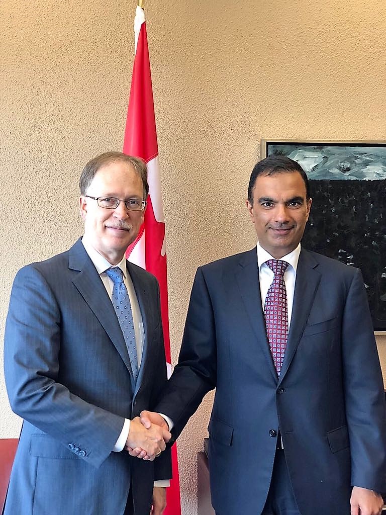 Canada’s Deputy Foreign Minister met Qatar’s Ambassador09 July 2018HE Canada’s Deputy Foreign Minister Ian Shugart met HE Qatar’s Ambassador Fahad Kafoud
