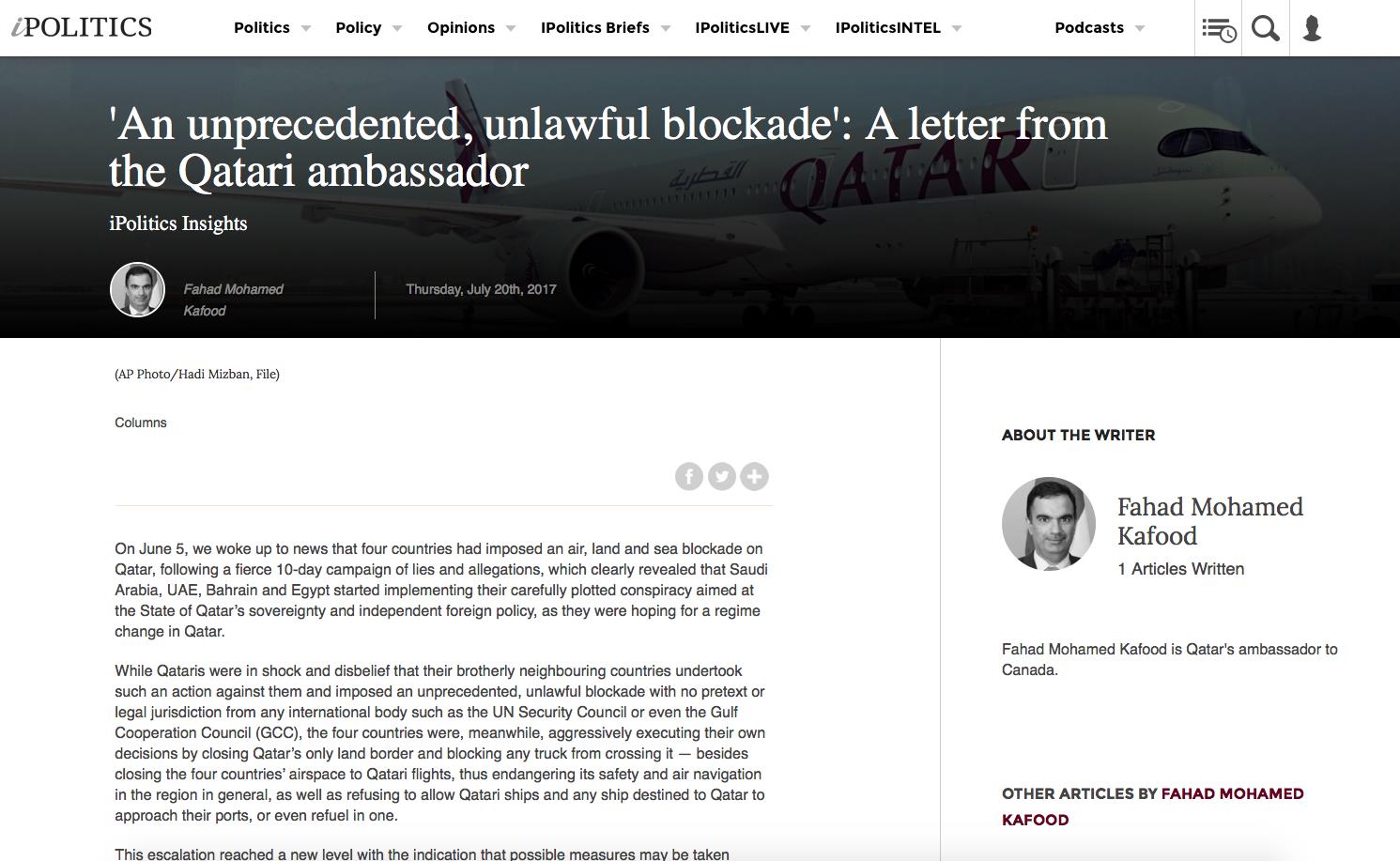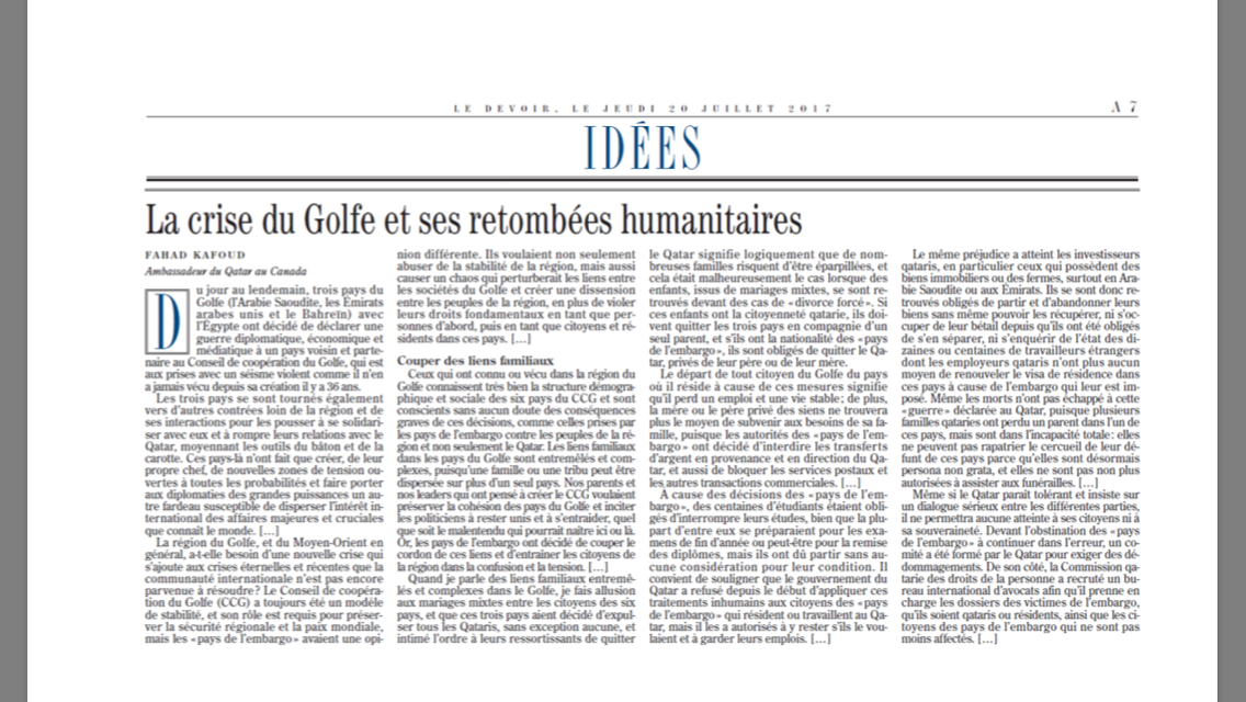 On June 5, we woke up to news that four countries had imposed an air, land and sea blockade on Qatar, following a fierce 10-day campaign of lies and allegations, which clearly revealed that Saudi Arabia, UAE, Bahrain and Egypt started implementing their carefully plotted conspiracy aimed at the State of Qatar’s sovereignty and independent foreign policy, as they were hoping for a regime change in Qatar.